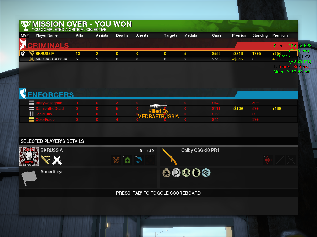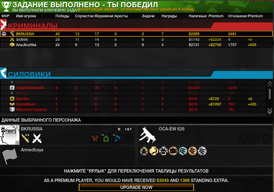 | Quote (proplay) Я не скриню, но он ноет и не он один, почти все ноют Вчера играли копами, попались против армедов(зарулонили), убил кого-то с перки (юзаю чтоб фугас быстрей открыть), после началось нытьё, типо чо юзаешь гранаты такие, от парней с ОСАМИ-ВИШПЕР, тоже не скринил, есть только счёт.