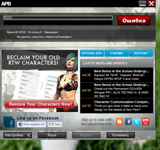 И так, эта тема создана для того, кто видит ошибку при входе в игру APB Reloaded, и соответственно не может играть и так, начнем: