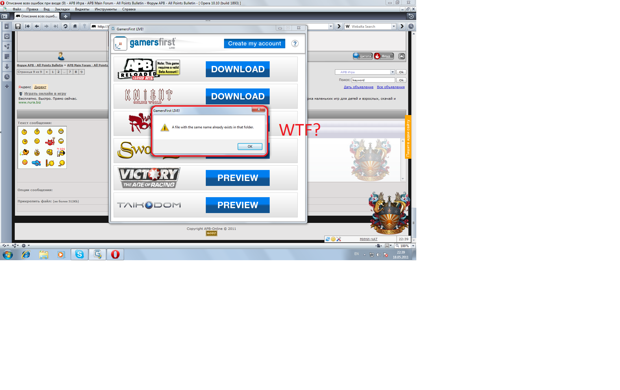 | Quote (Q2ZA) Вот такая ошибка, скачал GameFirst жмякаю Download и выскакивает ошибка. Перевод (Типо етот файл уже существует) Хотя пишет это во всех папках куда не пихну... Скачивай с другого места. Glife ещё не доработана )